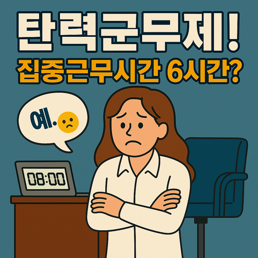 아니, 진짜 이게 무슨 경우냐?이게 회사를 다니는 유일하다면 유일했던 이유인 탄력근무제!우리 회사의 복지는 탄력근무제라고 8시, 9시, 10시 중에 골라 출근하라며?심지어 일주일에 하루는 재택근무까지 된다고 해서"오예! 🙌 "를 외치며 환승이직에 성공한 나, 오무사.야심 차게 8시 출근을 선택하고,남들보다 일찍 하루를 시작하는 뿌듯함에 어깨 뽕까지 장전했더랬지.🎯 그런데 문제는…요즘 회사 분위기가 심상치 않아.매출이 정체되면서 갑자기 재택근무는 슬그머니 사라졌고,'집중 근무 시간'이라는 괴상한 게 생겼지 뭐야?모든 직원들이 무조건 사무실에 있어야 하는 시간이라는데,그게 바로 10시부터 5시까지, 무려 6시간! "그럼 탄력근무는 왜 하는 건데?" 핵공감 분노 유발!진심, 탄력근무제의 의미를 1도 모르겠..